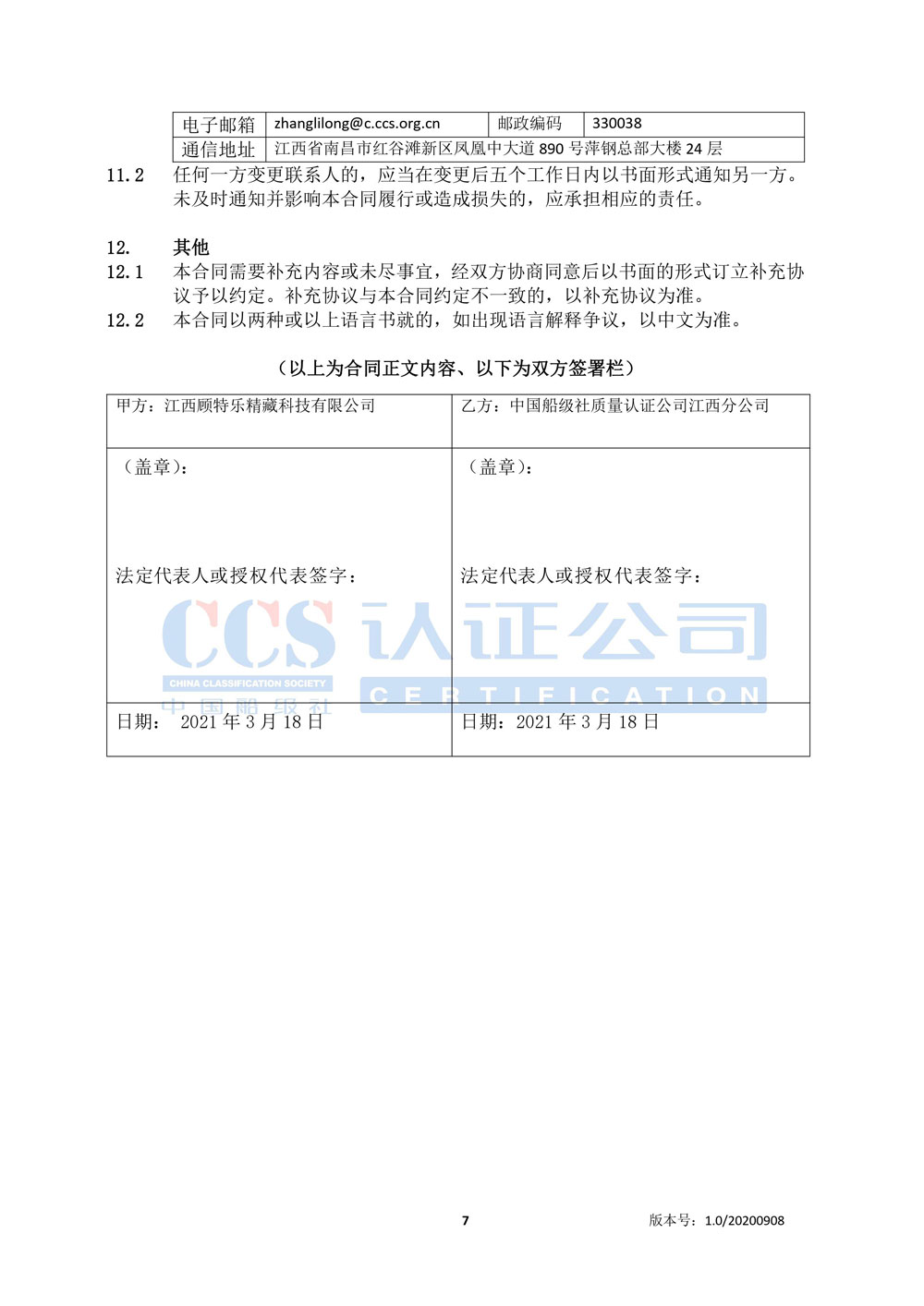 江西顧特樂溫室氣體審定核查合同