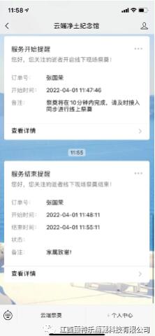 2、家屬親友云端凈土紀(jì)念館公眾號收到開啟祭奠儀式信息推送