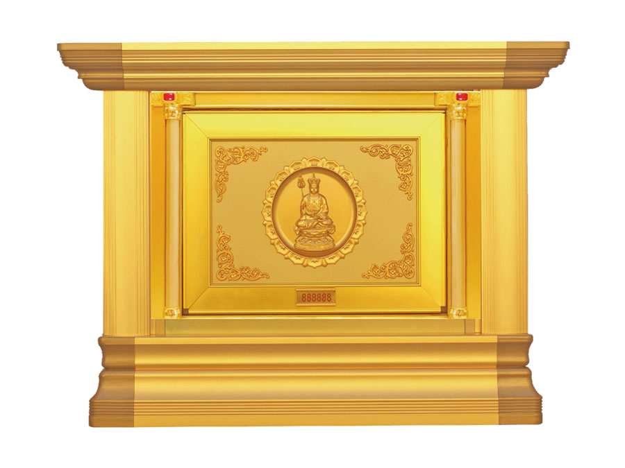 骨灰存放架是由箱體、面板、側(cè)板、頂蓋、底座、轉(zhuǎn)角、封板等構(gòu)成,以及佛臺(tái)、掛落、佛 龕等相關(guān)配件構(gòu)成。 箱體:分鍍鋅板、不銹鋼板、鋁板等五金板材箱體,鋁合金中空板扣接式箱體和純鋁壓鑄型 箱體。 面板:面板根據(jù)工藝不同、材料不同,風(fēng)格各異、大不相同,既要起到美觀易分類作用,又 要起到防火、防塵、防潮、防蟲等作用。 側(cè)板:用于裝飾和保護(hù)箱體側(cè)面的作用,又可根據(jù)現(xiàn)場,對(duì)存放架分類的標(biāo)識(shí)作用,一目了 然方便管理。 頂蓋、底座:都是穩(wěn)固整列和整排箱體水平線,底座還起到一部分承重作用。 轉(zhuǎn)角、封板:箱體轉(zhuǎn)彎處和空隙處塑形的作用。 佛臺(tái):由幾個(gè)骨灰存放架組成一個(gè)小型佛龕臺(tái),用于放置佛像。 佛龕、掛落:整排存放架為了劃分區(qū)域,在每個(gè)區(qū)域靠墻上方,設(shè)置小型佛龕,為了美觀, 加上掛落。