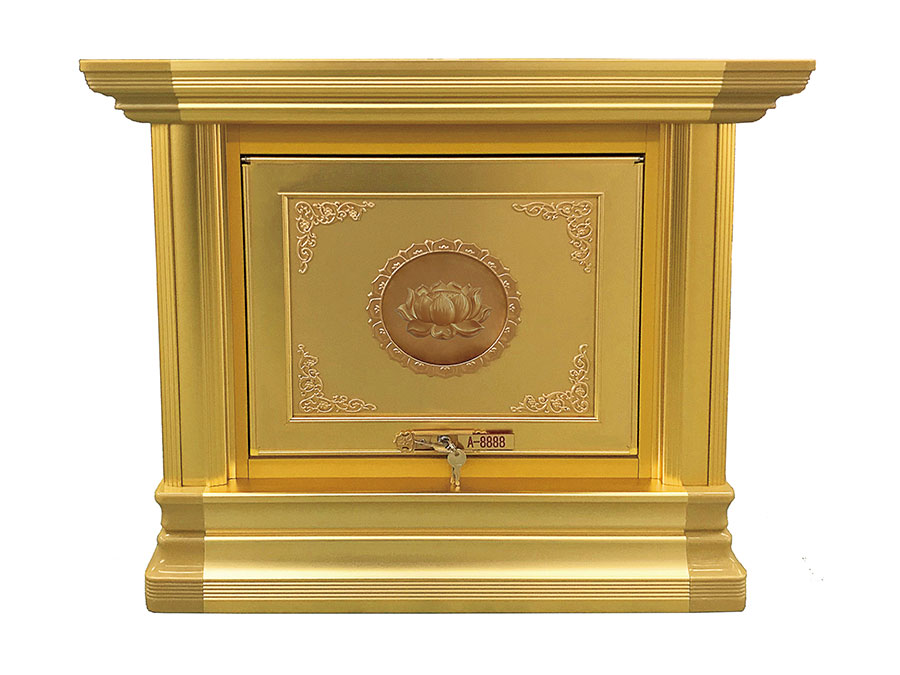 骨灰存放架是由箱體、面板、側(cè)板、頂蓋、底座、轉(zhuǎn)角、封板等構(gòu)成,以及佛臺、掛落、佛 龕等相關(guān)配件構(gòu)成。 箱體:分鍍鋅板、不銹鋼板、鋁板等五金板材箱體,鋁合金中空板扣接式箱體和純鋁壓鑄型 箱體。 面板:面板根據(jù)工藝不同、材料不同,風格各異、大不相同,既要起到美觀易分類作用,又 要起到防火、防塵、防潮、防蟲等作用。 側(cè)板:用于裝飾和保護箱體側(cè)面的作用,又可根據(jù)現(xiàn)場,對存放架分類的標識作用,一目了 然方便管理。 頂蓋、底座:都是穩(wěn)固整列和整排箱體水平線,底座還起到一部分承重作用。 轉(zhuǎn)角、封板:箱體轉(zhuǎn)彎處和空隙處塑形的作用。 佛臺:由幾個骨灰存放架組成一個小型佛龕臺,用于放置佛像。 佛龕、掛落:整排存放架為了劃分區(qū)域,在每個區(qū)域靠墻上方,設(shè)置小型佛龕,為了美觀, 加上掛落。