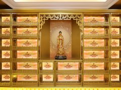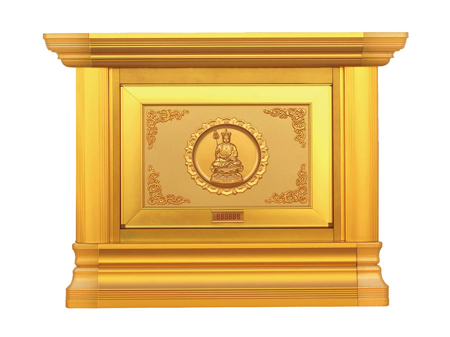 骨灰存放架是由箱體、面板、側(cè)板、頂蓋、底座、轉(zhuǎn)角、封板等構(gòu)成,以及佛臺、掛落、佛 龕等相關(guān)配件構(gòu)成。 箱體:分鍍鋅板、不銹鋼板、鋁板等五金板材箱體,鋁合金中空板扣接式箱體和純鋁壓鑄型 箱體。 面板:面板根據(jù)工藝不同、材料不同,風(fēng)格各異、大不相同,既要起到美觀易分類作用,又 要起到防火、防塵、防潮、防蟲等作用。 側(cè)板:用于裝飾和保護(hù)箱體側(cè)面的作用,又可根據(jù)現(xiàn)場,對存放架分類的標(biāo)識作用,一目了 然方便管理。 頂蓋、底座:都是穩(wěn)固整列和整排箱體水平線,底座還起到一部分承重作用。 轉(zhuǎn)角、封板:箱體轉(zhuǎn)彎處和空隙處塑形的作用。 佛臺:由幾個骨灰存放架組成一個小型佛龕臺,用于放置佛像。 佛龕、掛落:整排存放架為了劃分區(qū)域,在每個區(qū)域靠墻上方,設(shè)置小型佛龕,為了美觀, 加上掛落。