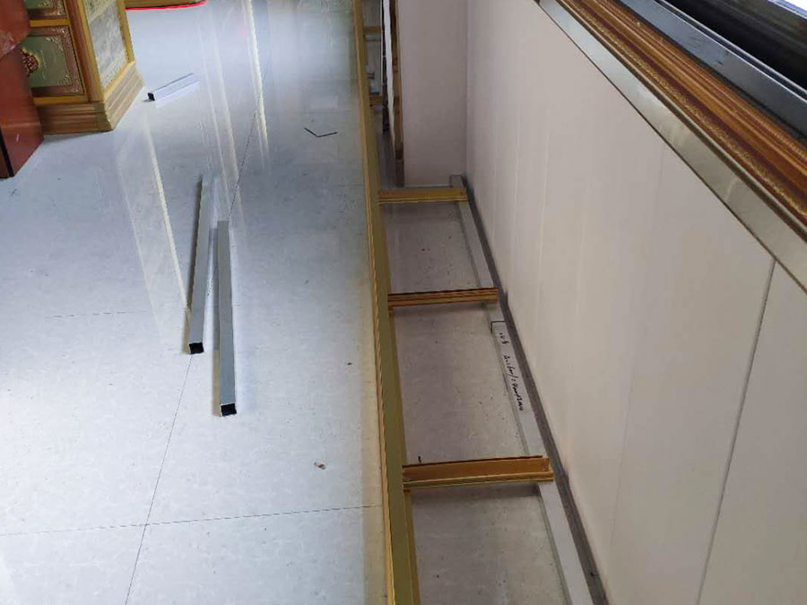頂?shù)卒X合金及門板的拼裝采用專用連接件連接,既美觀又避免人員的碰撞刮傷。