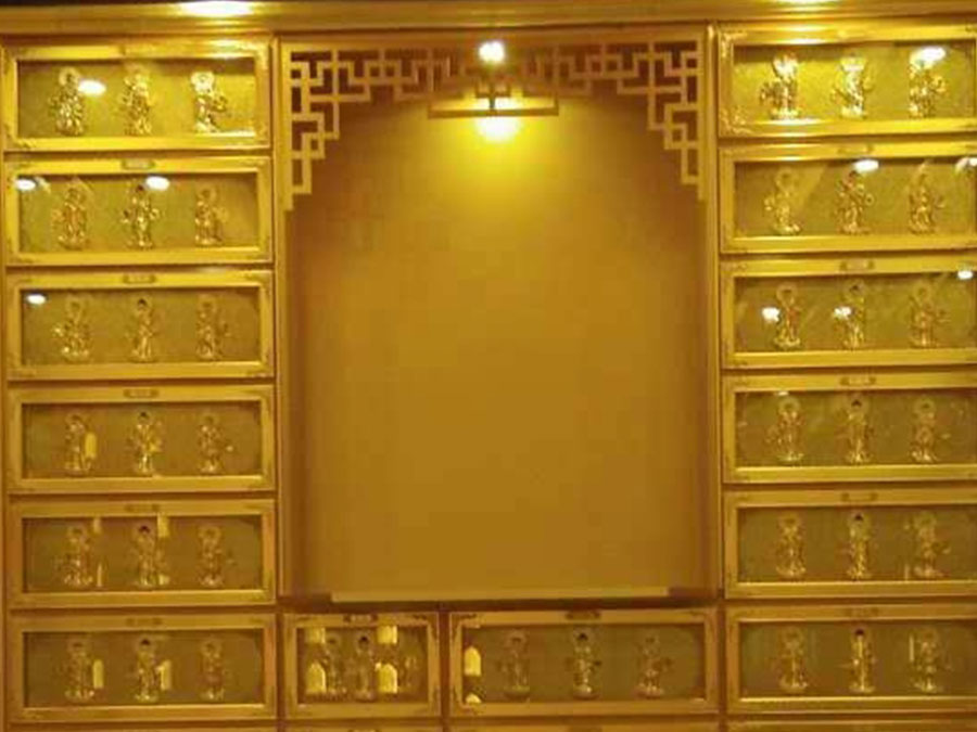 骨灰存放架是由箱體、面板、側(cè)板、頂蓋、底座、轉(zhuǎn)角、封板等構(gòu)成,以及佛臺(tái)、掛落、佛龕等相關(guān)配件構(gòu)成。