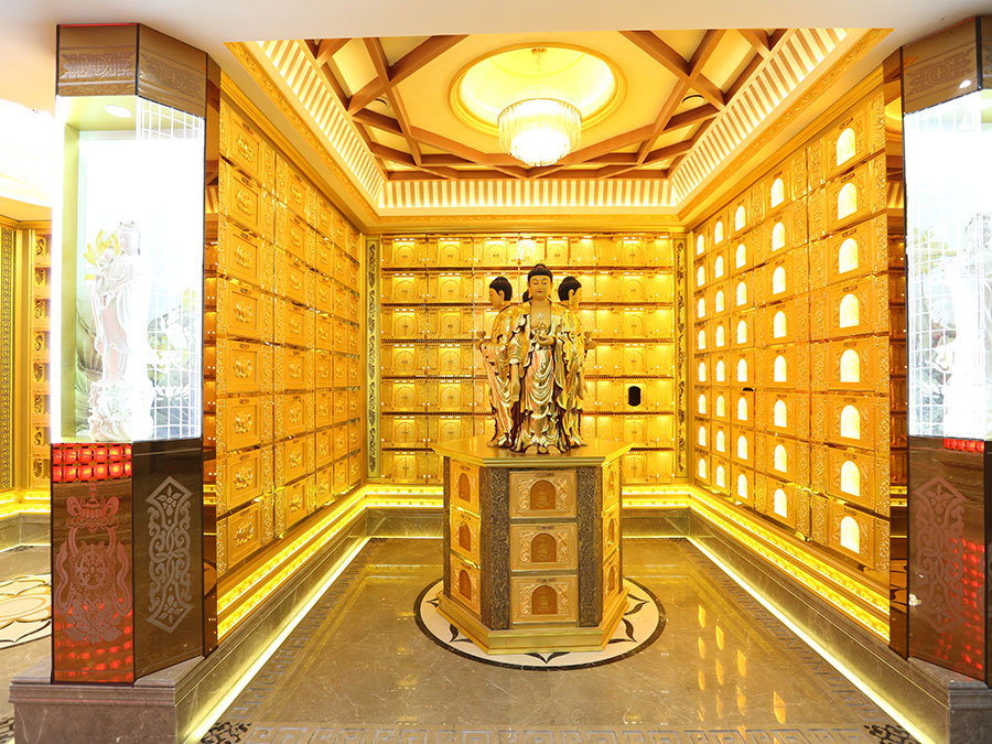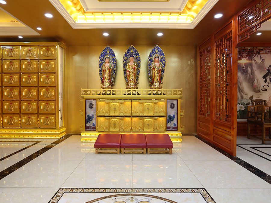 佛臺(tái):由幾個(gè)骨灰存放架組成一個(gè)小型佛龕臺(tái),用于放置佛像。