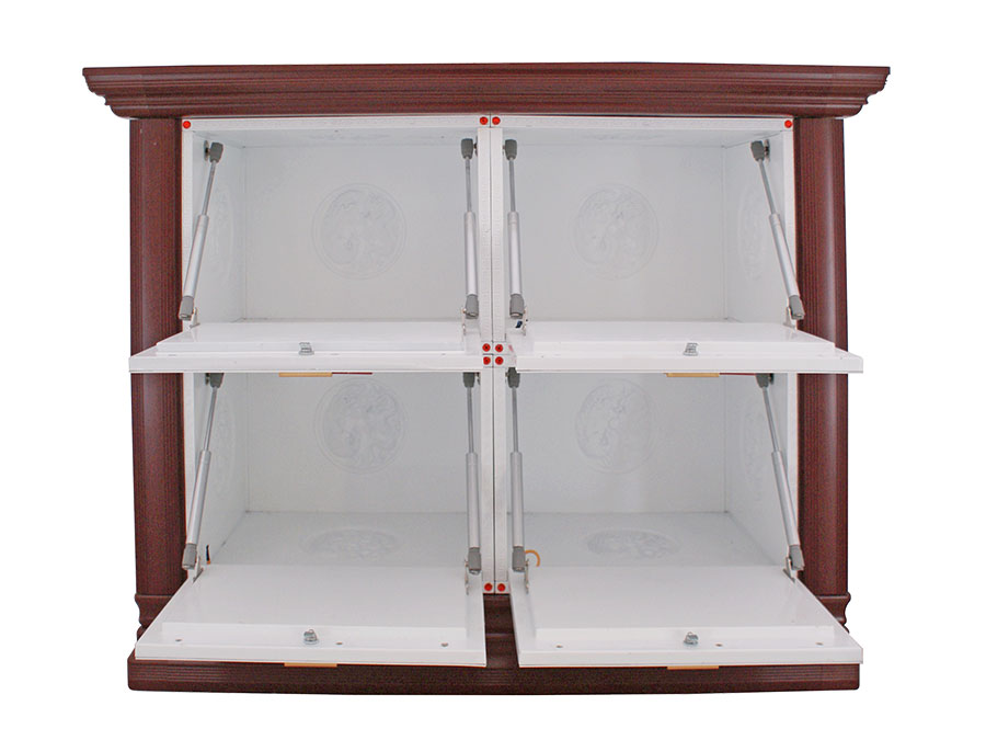 骨灰存放架是由箱體、面板、側(cè)板、頂蓋、底座、轉(zhuǎn)角、封板等構(gòu)成,以及佛臺(tái)、掛落、佛 龕等相關(guān)配件構(gòu)成。 箱體:分鍍鋅板、不銹鋼板、鋁板等五金板材箱體,鋁合金中空板扣接式箱體和純鋁壓鑄型 箱體。 面板:面板根據(jù)工藝不同、材料不同,風(fēng)格各異、大不相同,既要起到美觀易分類作用,又 要起到防火、防塵、防潮、防蟲等作用。 側(cè)板:用于裝飾和保護(hù)箱體側(cè)面的作用,又可根據(jù)現(xiàn)場,對存放架分類的標(biāo)識作用,一目了 然方便管理。 頂蓋、底座:都是穩(wěn)固整列和整排箱體水平線,底座還起到一部分承重作用。 轉(zhuǎn)角、封板:箱體轉(zhuǎn)彎處和空隙處塑形的作用。 佛臺(tái):由幾個(gè)骨灰存放架組成一個(gè)小型佛龕臺(tái),用于放置佛像。 佛龕、掛落:整排存放架為了劃分區(qū)域,在每個(gè)區(qū)域靠墻上方,設(shè)置小型佛龕,為了美觀, 加上掛落。